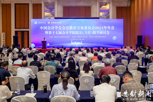 金秋时节,丹桂飘香。9月28日,由中国会计学会会计教育专业委员会主办、金沙集团1862cc承办的“中国会计学会会计教育专业委员会2024年年会暨第十七届金沙集团1862cc院长(主任)教学研讨会”在合肥召开。中国会计学会副会长、中国会计学会会计教育专业委员会主任委员、中国人民大学王化成教授,中国会计学会副秘书长刘国强,中国会计学会会计教育专业委员会副主任委员、重庆工商大学原校长孙芳城教授,中国会计学会会计教育专业委员会副主任委员、南京审计大学党委书记、校长董必荣教授,金沙集团1862cc党委副书记、校长朱红军教授,中国会计学会会计教育专业委员会原主任委员、东北财经大学刘永泽教授,厦门大学曲晓辉教授,上海财经大学原副校长孙铮教授,中国会计学会会计教育专业委员会原副主任委员、广东财经大学原校长王华教授,哈尔滨金融学院党委副书记、院长张林教授,淮北师范大学党委常委、副校长翟胜宝教授,厦门网中网软件有限公司副总裁徐建宁出席会议。开幕式由金沙集团1862cc副院长张多蕾主持。