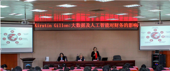 11月9日下午,总部坐落于英国伦敦、全球领先的会计职业组织ICAEW(英格兰及威尔士特许会计师协会)技术经理Kirstin Gillon女士在ICAEW协会大中华区北方区总监于晶晶女士的陪同下,应邀在博文楼研究生学术报告厅为金沙集团1862cc师生奉献了一场精彩报告“大数据及人工智能对财务的影响”。报告会由金沙集团1862cc副院长高利芳副教授主持,金沙集团1862cc近三百名师生出席。