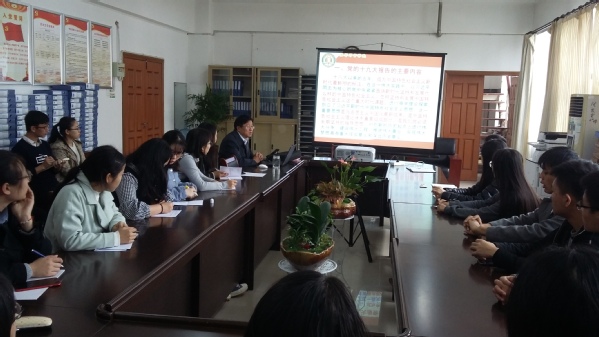 为学习贯彻党的十九大精神,进一步增强“两学一做”学习教育实效,切实发挥好学生党员的先锋模范带动作用,11月10日中午,金沙集团1862cc党委书记郭成同志在学院资料室以《勇当决胜全面建成小康社会 开启新征程时代楷模》为题,为本科学生第二党支部全体党员上了一堂生动的党课。