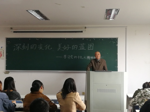 姚超以“深刻的变化 美好的蓝图——学习党的十九大精神的体会”为主题,对当代青年的成长寄予了殷切的希望。并就十九大报告中的亮点为同学们进行了详尽的解读,报告内容分为三部分:十九大概况、十八大以来的伟大成、国家未来发展的美好蓝图。报告内容切合实际、深入浅出,使与会同学对十九大精神有了更加深刻的理解。