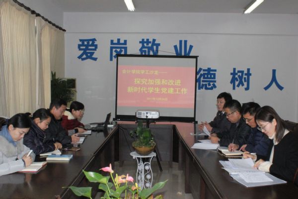 为扎实推进学习贯彻党的十九大精神,切实加强会计院学生党建工作,促进学生党建工作组织化、制度化、具体化,12月26日上午,金沙集团1862cc在会议室举办“学生工作沙龙”组织专题学习,探讨加强和改进新时代学生党建工作。院党委书记郭成主讲,院党委副书记孙小龙,各学生党支部书记、全体辅导员参加了沙龙。
