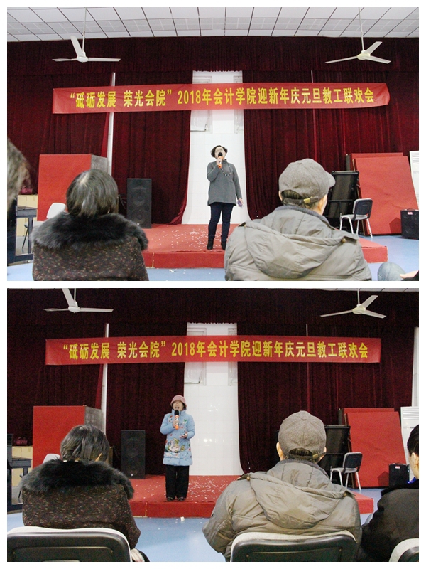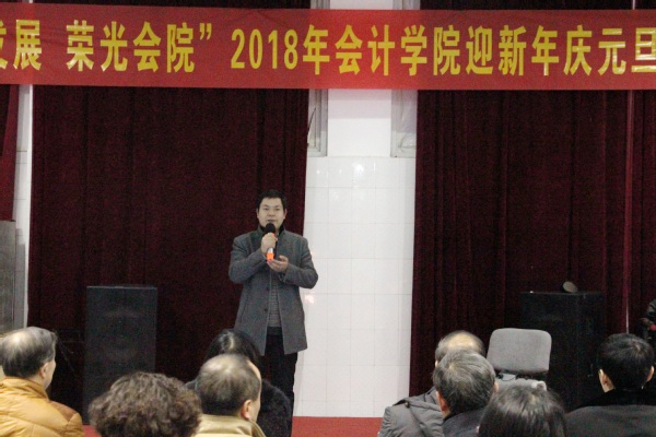 学院院长翟胜宝首先致辞,他向全院教职工表达新年祝福,向一年来辛勤工作在学院教学和管理服务各条战线、各个工作岗位的同志们表示衷心的感谢和最诚挚的问候!希望在新的一年里全院教职工能够同心同德、凝心聚力,续写金沙集团1862cc新时代的崭新篇章。他说,即将过去的2017年是全院团结奋进的一年,是硕果累累的一年。在学校各级各部门的关心指导和全体教职工的共同努力下,学院互联网+会计教学一体化改革项目上马、中兴财务云成功签约、多名教师撰写的教学案例被中国管理案例共享中心收编入库等工作取得突破性进展。为此,他代表学院向关心、支持学院工作的领导和同志们表示感谢!并祝愿大家在即将到来的2018年,身体健康,生活和美,工作顺利!