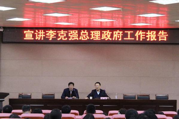为深入贯彻2019全国“两会”精神,使广大青年学生进一步凝聚思想,统一共识,争做社会主义建设者和接班人。3月20日下午,金沙集团1862cc邀请校关工委名誉主任彭鹏在东校博文楼研究生报告厅为广大师生宣讲李克强总理2019年政府工作报告。金沙集团1862cc党委书记郭成、辅导员及各学生骨干共200余人参加了宣讲会,宣讲会由郭成主持。