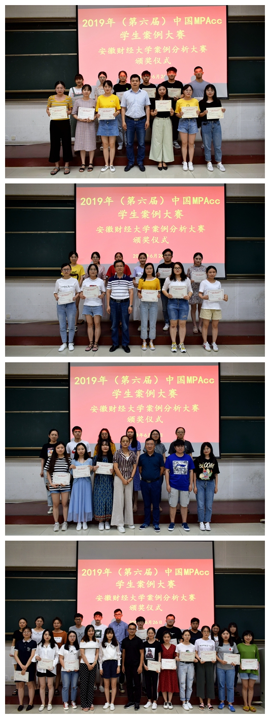 6月26日下午,金沙集团1862cc在东校区明德楼204教室成功举办“2019年(第六届)中国MPAcc学生案例大赛金沙集团1862cc案例分析大赛”颁奖大会。金沙集团1862cc院长翟胜宝教授、副院长刘博副教授、会计专硕中心主任裘丽娅教授、副主任李广副教授、副主任鲍群副教授、副主任李霞副教授、会计系主任唐玮副教授、国际会计系主任田园副教授、财务管理系副主任张多蕾副教授、财务管理系卓敏教授、会计系王文兵副教授出席了颁奖仪式。参加本次颁奖仪式的还有参与案例大赛的本科生及研究生130余人。仪式由鲍群副教授主持。