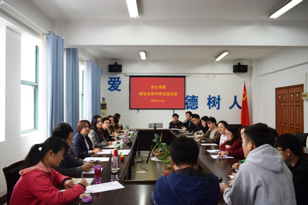 为了进一步加强研究生教学管理和提升教学质量,11月6日下午,金沙集团1862cc在学院会议室召开了研究生期中师生座谈会。院长助理唐玮、会计专硕教育中心主任裘丽娅、会计学硕教育中心主任周蕾、会计专硕教育中心副主任李广、鲍群、李霞、会计学硕教育中心副主任朱兆珍、李坤榕、审计专硕教育中心副主任董小红,以及研究生各班学生干部代表出席会议。座谈会由唐玮主持。
