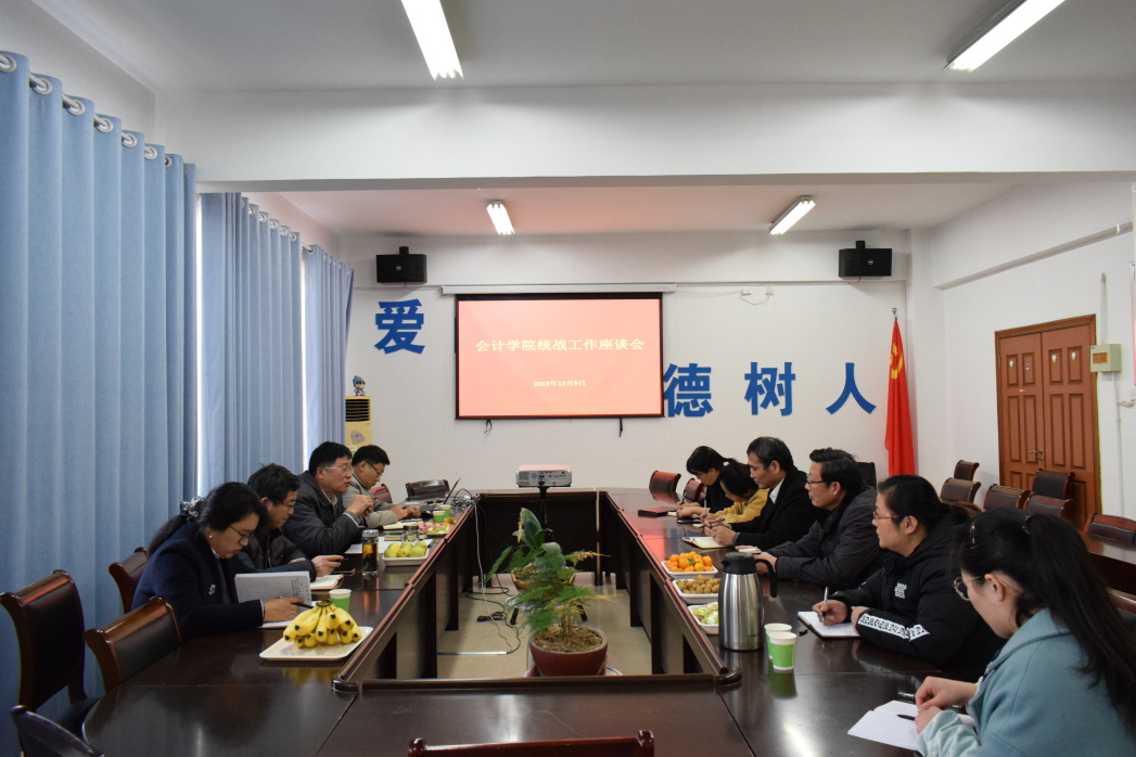 12月9日,金沙集团1862cc党委在609会议室召开了2019年统战工作座谈会。学院党委书记郭成、副书记李亚州、副院长刘博、副院长高利芳及学院各民主党派代表参加了座谈会。会议由院党委书记郭成主持。