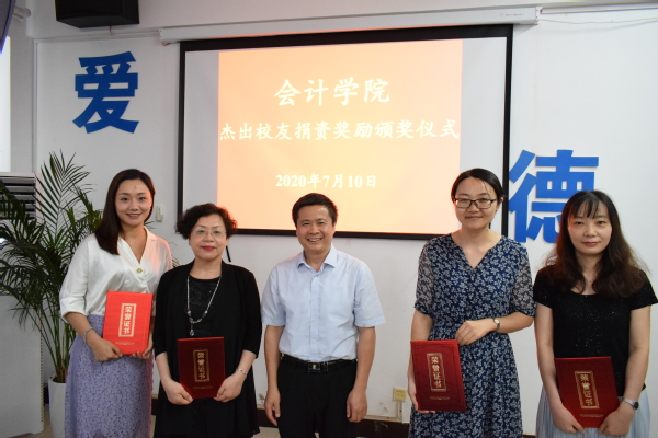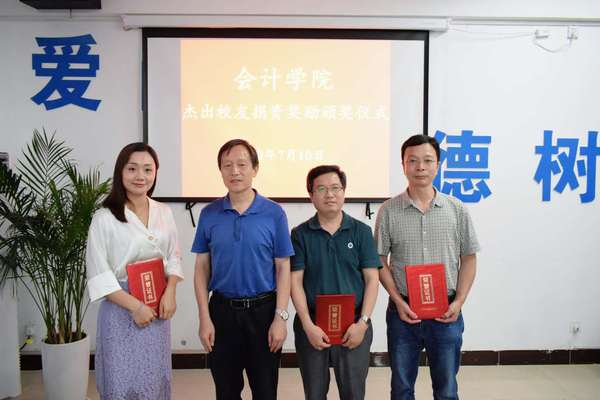 7月10日下午,我院期末总结暨杰出校友捐资奖励表彰大会在609会议室隆重举行。杰出校友天职国际会计师事务所安徽分所所长周学民先生、上海博超科技有限公司董事长晋胜国先生出席本次表彰大会,会议由翟胜宝院长主持。
