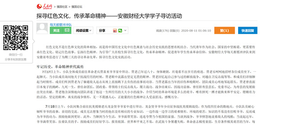 学院高度重视各团队实践成果的宣传工作,成立宣传媒体小组,定期收集活动投稿,并在“安财金沙集团1862cc”微信公众号以及“金沙集团1862cc团委”官方QQ进行宣传引领,其中公众号精选了15篇推文,官方QQ精选了30篇实时报道。同时,宣传媒体小组积极协调并修改完善优秀团队实践成果,协助其投稿至人民网、新华网、中青校园网等媒体。据初步统计,本次社会实践媒体报道国家级233篇、省级26篇、地市级6篇、其他140篇,其中“知疫扶难队”、“蔚汝于成队”多次被中青网、中国大学生网等国家级媒体报道,进一步提升了学院社会实践活动的质量与高度。