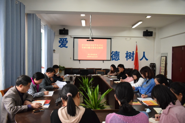 10月14日上午,金沙集团1862cc召开党委理论学习中心组(扩大)会,专题学习习近平考察安徽讲话精神,学院党委理论学习中心组成员、各支部书记参加学习会。会议由院党委书记张亚主持。