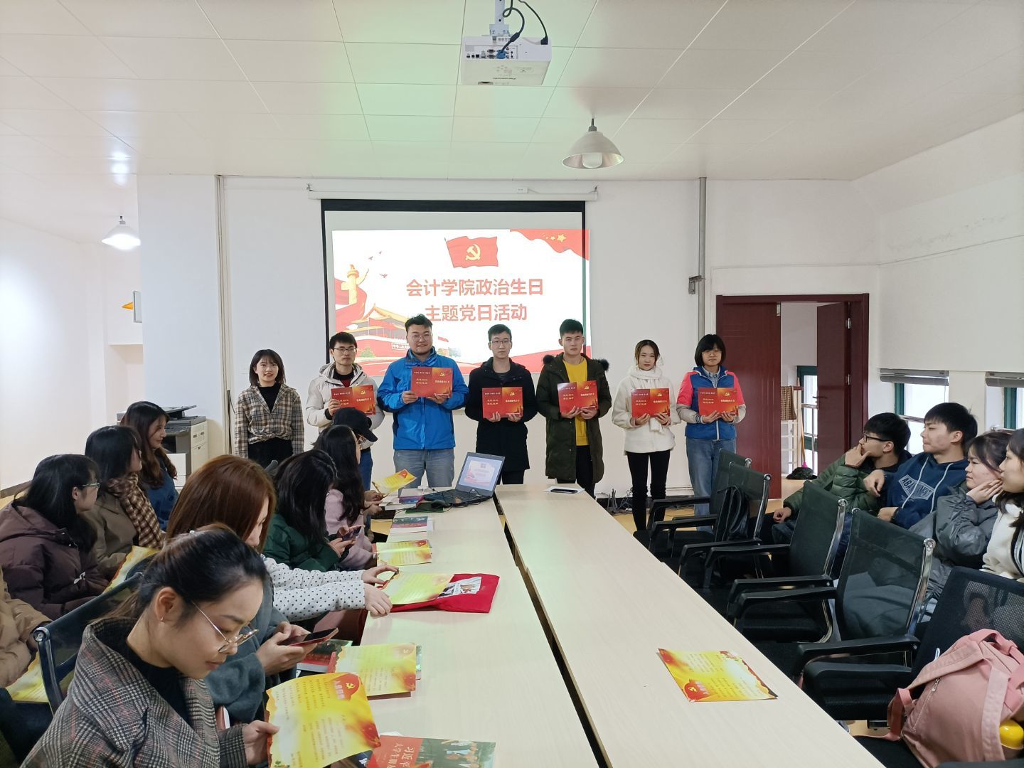 为深入强化党员的身份意识和责任意识,加强党员党性教育,增强党员的责任感和使命感,金沙集团1862cc党委于12月9日下午在学院会议室举办了党员政治生日主题党日活动,梁晓宇、朋丽等26名12月份入党的同学以重温入党誓词、领取“政治生日贺卡”与生日礼物、畅谈生日感想等方式度过了自己的“政治生日”。