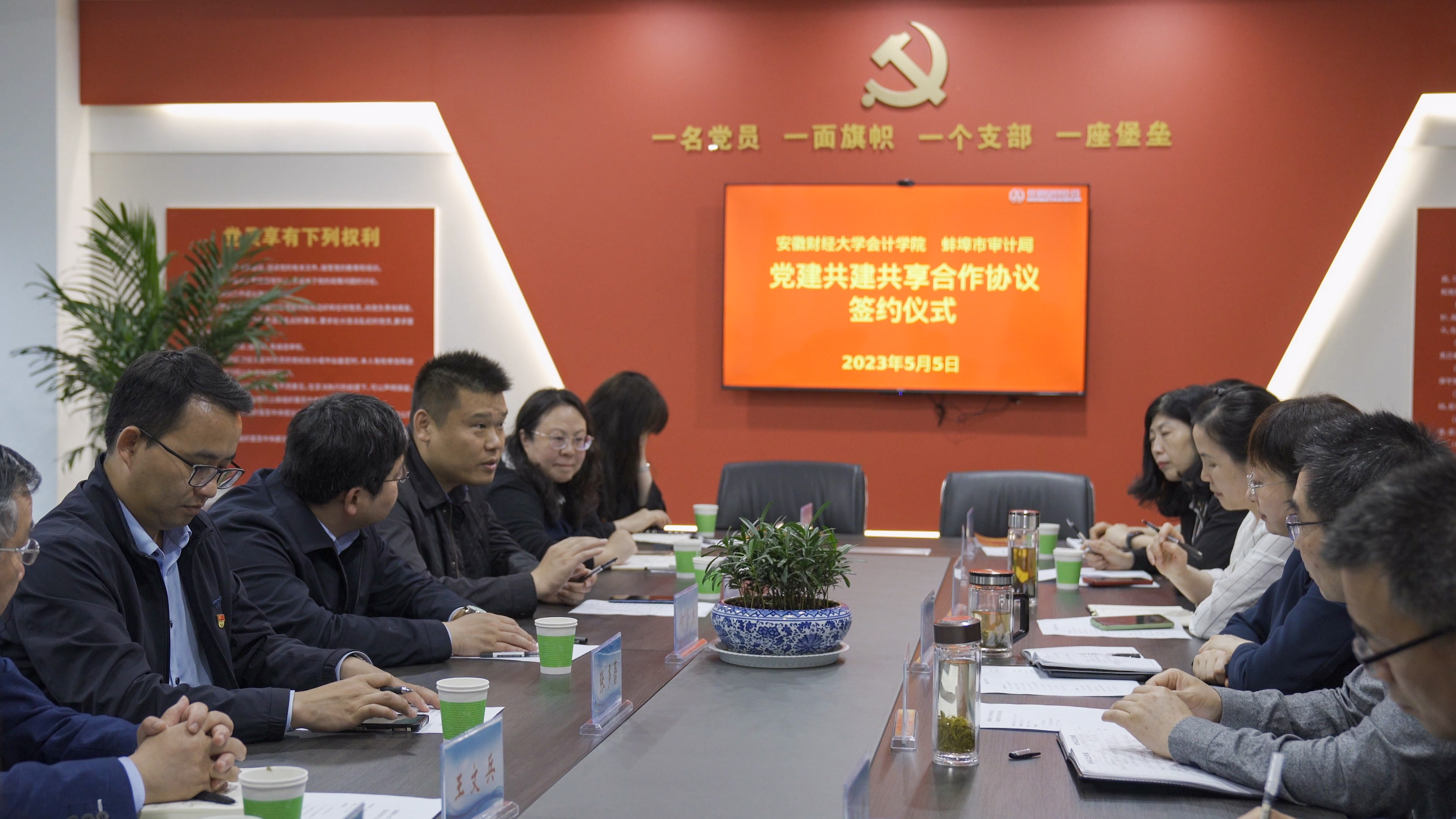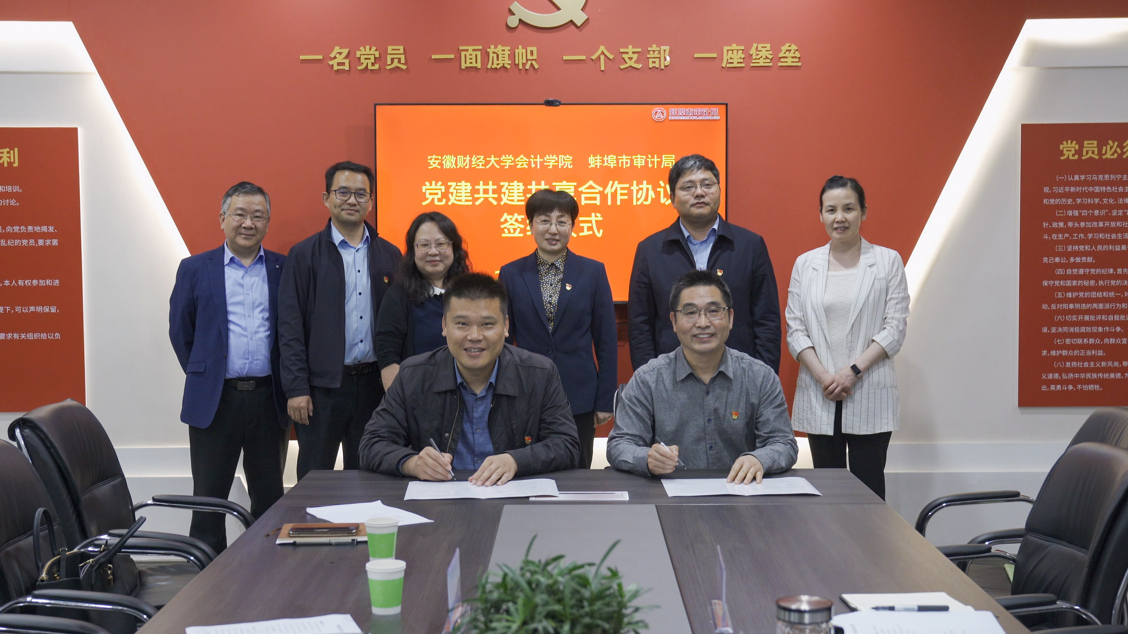 何贤杰从金沙集团1862cc审计学专业及学科建设、师资建设、人才培养、社会服务、就业创业等方面介绍了学校和学院的基本情况,希望在高水平审计人才共享、审计专业智库和实习基地建设、师生挂职锻炼和实习实践、科学研究、社会服务、大学生就业创业及志愿服务等方面与蚌埠市审计局开展深入合作,相互发挥优势互助,突出需求导向、效果导向,积极融入蚌埠市审计事业,助力蚌埠市经济社会建设发展。谢德刚希望双方充分发挥双方在人才、阵地、品牌、服务等方面的优势,以党建工作为引领、以共建为基础,以合作共享为目标,创新党建活动载体,丰富党建活动内容,增强机关党建工作实效,深入推进党建引领高质量发展。同时对共建内容以及工作安排作了简要介绍。毛大忠系统介绍了审计局在加强组织建设、强化党建融合、加强党务干部培养以及打造审计护航品牌等方面的特色做法,希望与金沙集团1862cc党建工作优势互补、互带互动,实现“组织共建、人才共育、资源共享、发展共谋、成果共创”的合作目标。会上,谢德刚和吴根献签署双方党建共建协议。