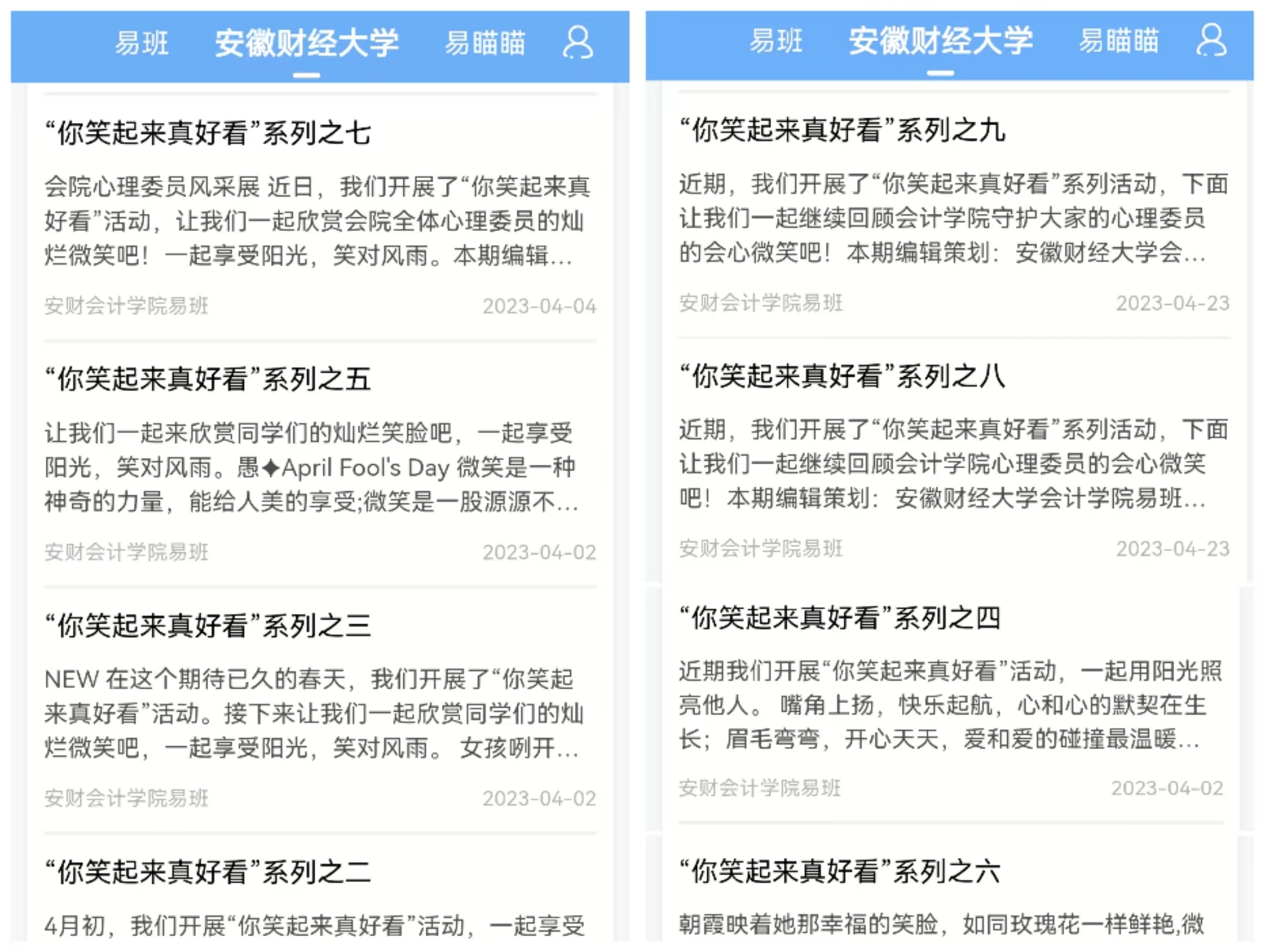 “你笑起来真好看——青春笑容很灿烂”活动,同学们积极分享自己的灿烂笑容,释放压力,放松心情,传递正能量,展现积极向上的生活态度。“遇见心理好书——心理好书很经典”活动中,疗愈成长类如《我有一只叫抑郁症的黑狗》、情绪管理类如《和失眠说再见》和《走出抑郁》以及心理启迪类如《人间游戏》等好书激发了学生对心理学的浓厚兴趣,树立正确的心理健康观念,培养良好的心理品质,吸收了中外优秀心理经典作品的内涵。“爱心理,爱电影——心理电影很好看”活动,通过观看优秀心理电影,积极体验影片中同角色的心理变化历程,感悟主人公的心理成长历程,获得一次次视觉的盛宴、心灵的洗礼、思想的更新,积极疗愈自己。