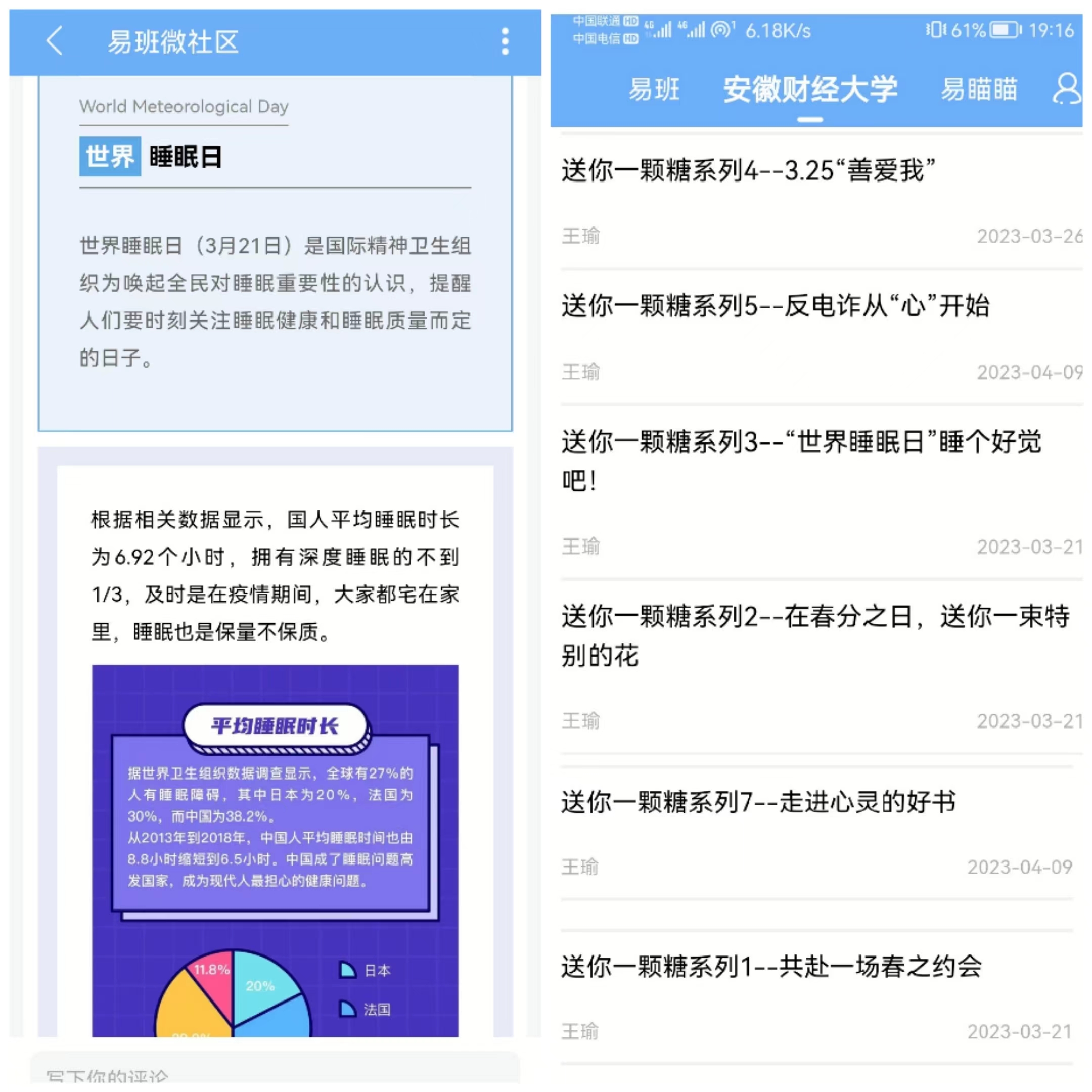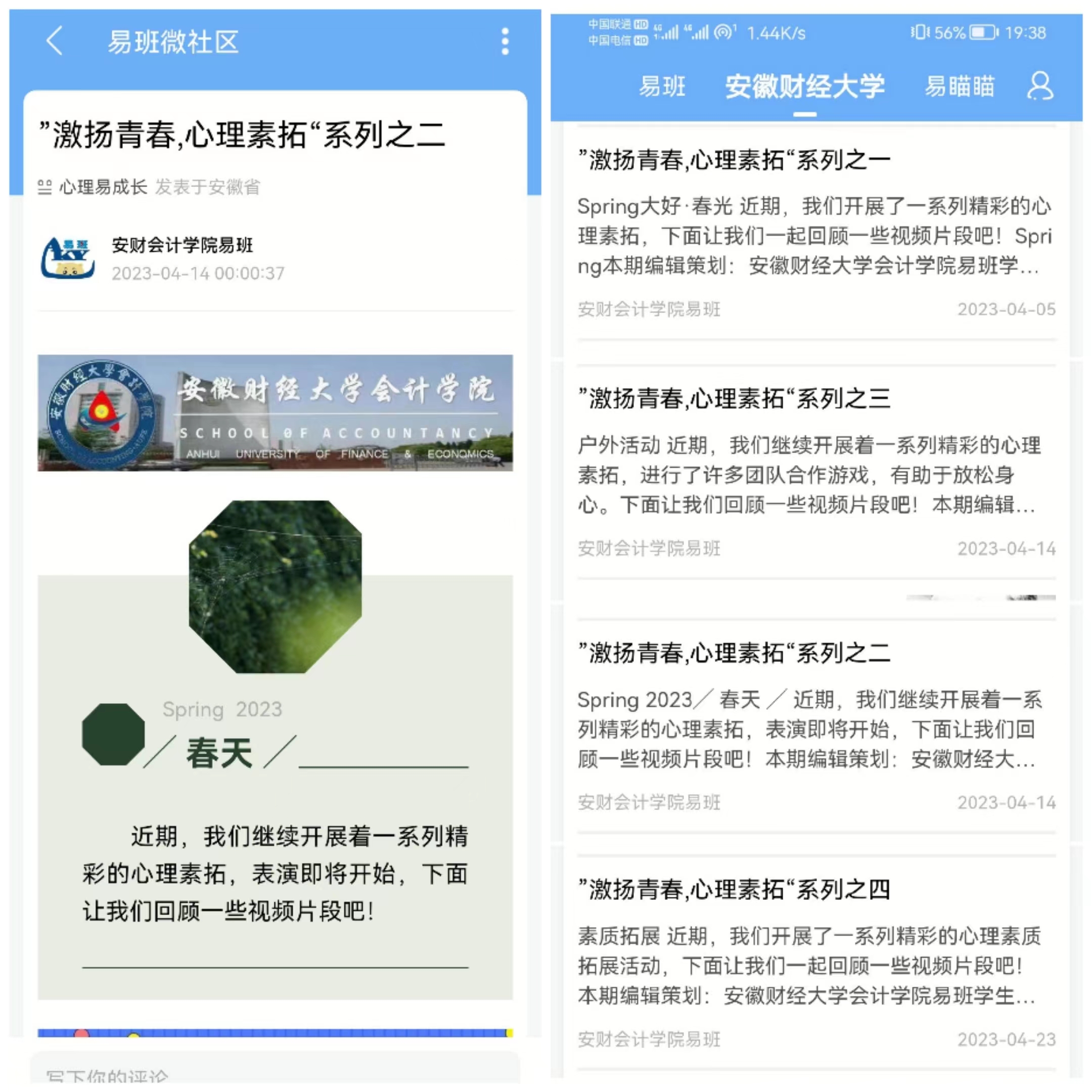 “我和心理学家的约会——心理学家很有趣”活动,通过分享西格蒙德·弗洛伊德、艾里克森、斯金纳、罗杰斯等著名心理学家的成就以及代表著作,帮助学生丰富内心、拓展思维、实现心灵的洗礼。“灿烂春日遇见优秀学姐——保研学姐很优秀”活动,通过邀请部分优秀的保研学生分享自己在论文写作、学科竞赛、英语学习等方面的经验,帮助学生们增长知识、提升能力,调整心态、悦纳自我,用乐观、阳光的心态面对学习和生活。“送你一颗糖——心灵加油很温馨”活动中,通过分享春日赏花、踏青出游、“善爱我”、献给自己的诗、晚安寄语、春季健康小贴士等方面,为同学们带去心灵上的慰藉和温暖,能时刻感受生活中的点滴美好。“心理素拓精彩回顾——操场素拓很欢乐”的活动中,本科和研究生心理委员和部分党员积极参与其中,紧张而有趣的素质拓展帮助同学们扩大了朋友圈,增强了互相信任和团结协作能力,展示了奋发向上和朝气蓬勃的精神风貌。